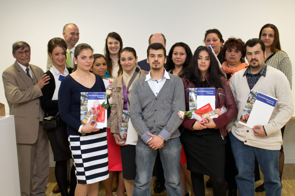 Die Qualifizierungsmaßnahme wurde von den Jobcentern, dem Berufsbildungszentrum Schleswig und dem Bildungsministerium des Landes Schleswig-Holstein getragen. Die zehn Sintezzas und zwei Sintos im Alter von 20 bis 30 Jahren erhalten Teilzeitstellen.